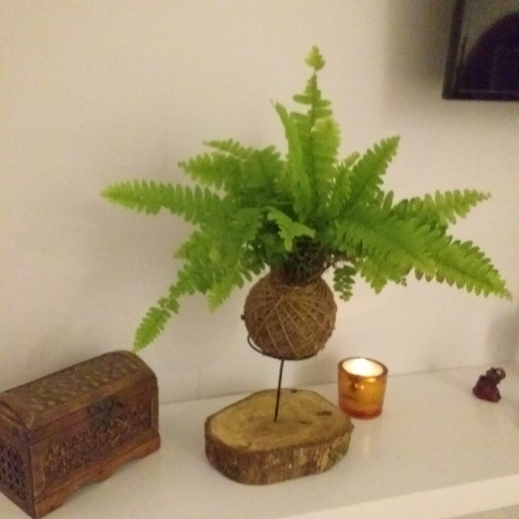 Ao contrário do bonsai, a kokedama não utiliza vasos, podendo, portanto, ser mantida sobre um móvel  ou ficar pendurada em local de destaque.
